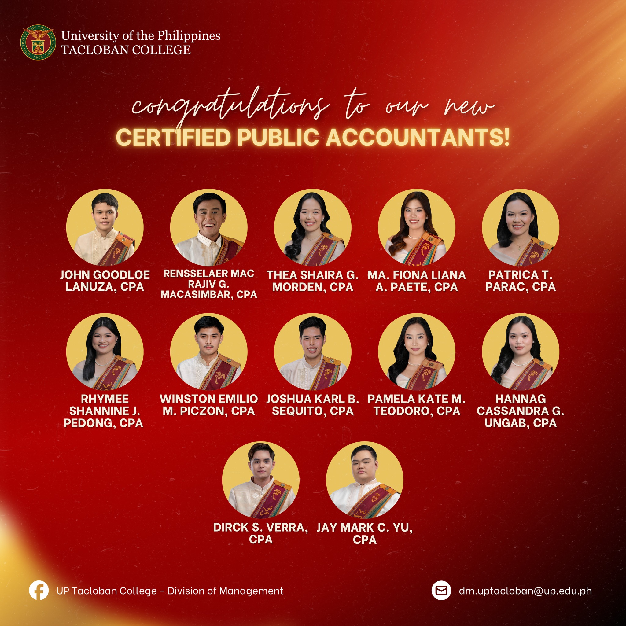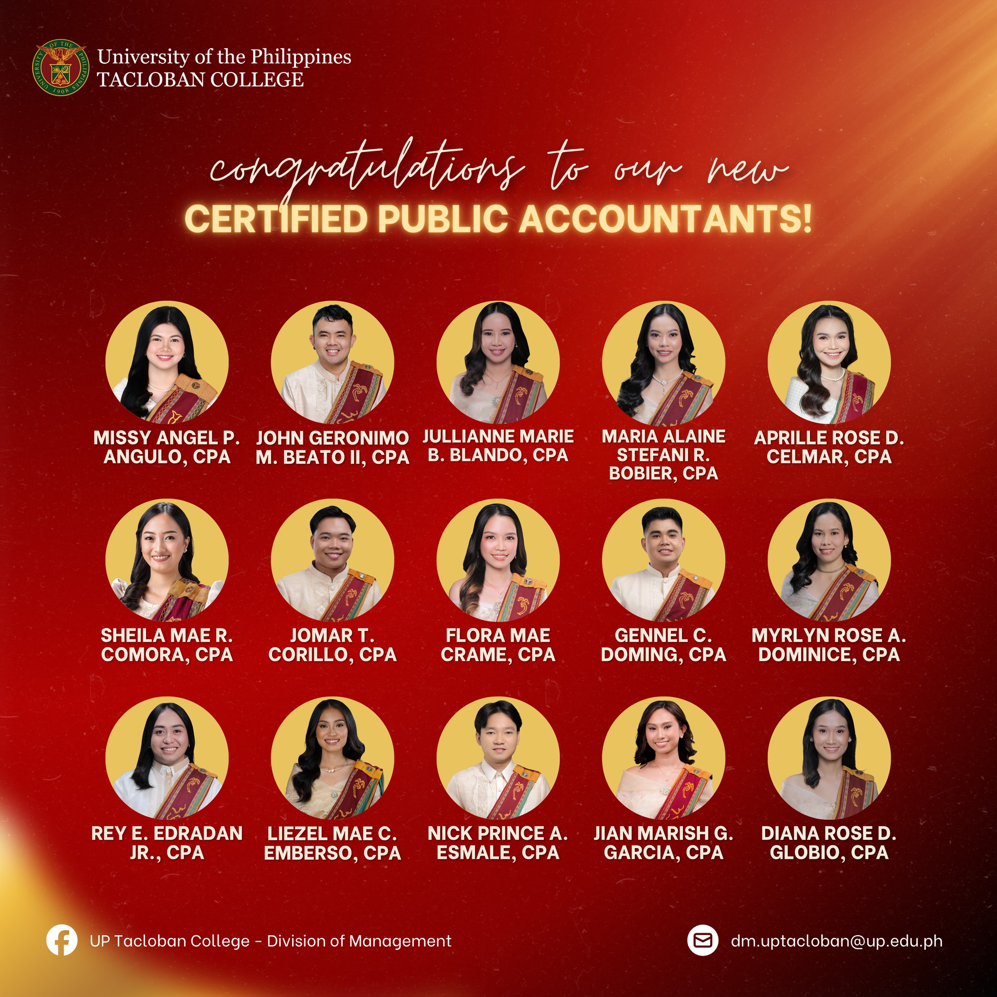 Twenty-seven BS Accountancy graduates of UP Tacloban passed the October 2025 Licensure Examination for Certified Public Accountants.