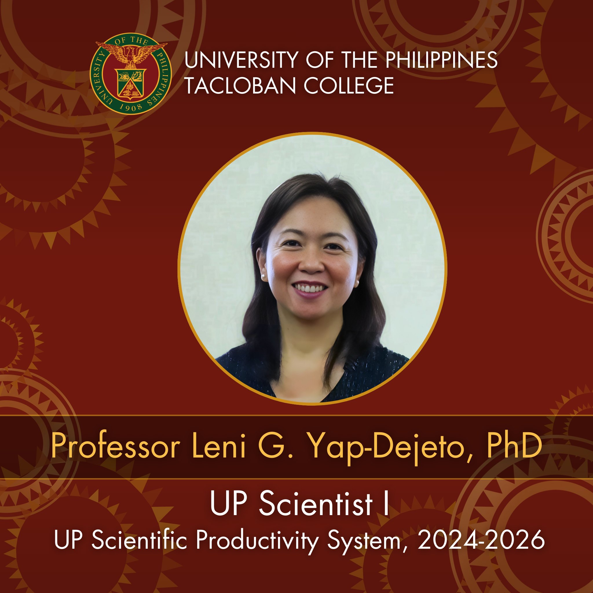 UP Tacloban College congratulates Professor Leni G. Yap-Dejeto on her appointment as UP Scientist I