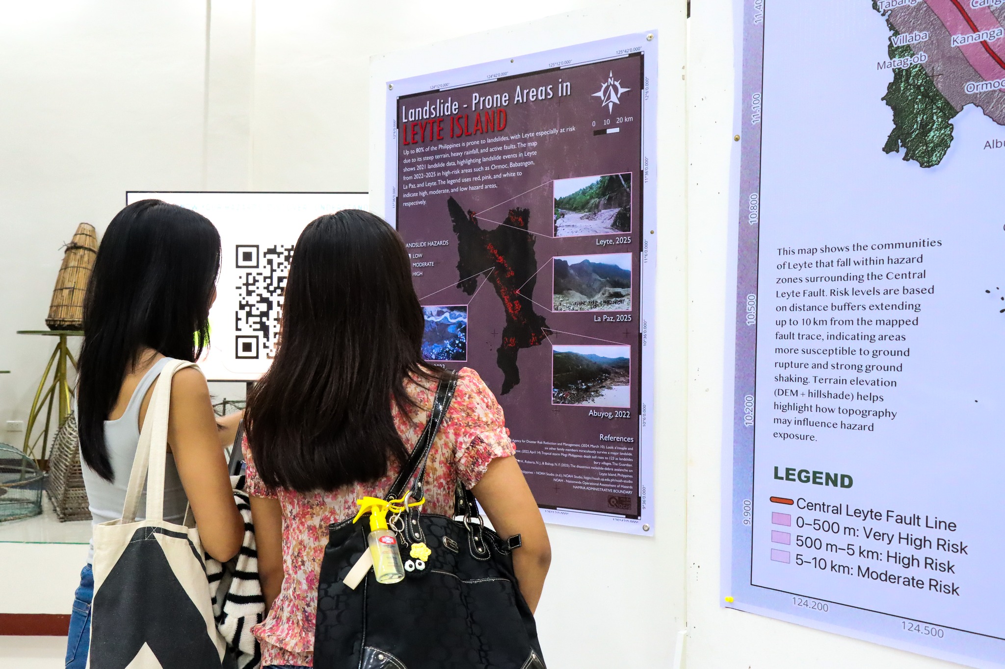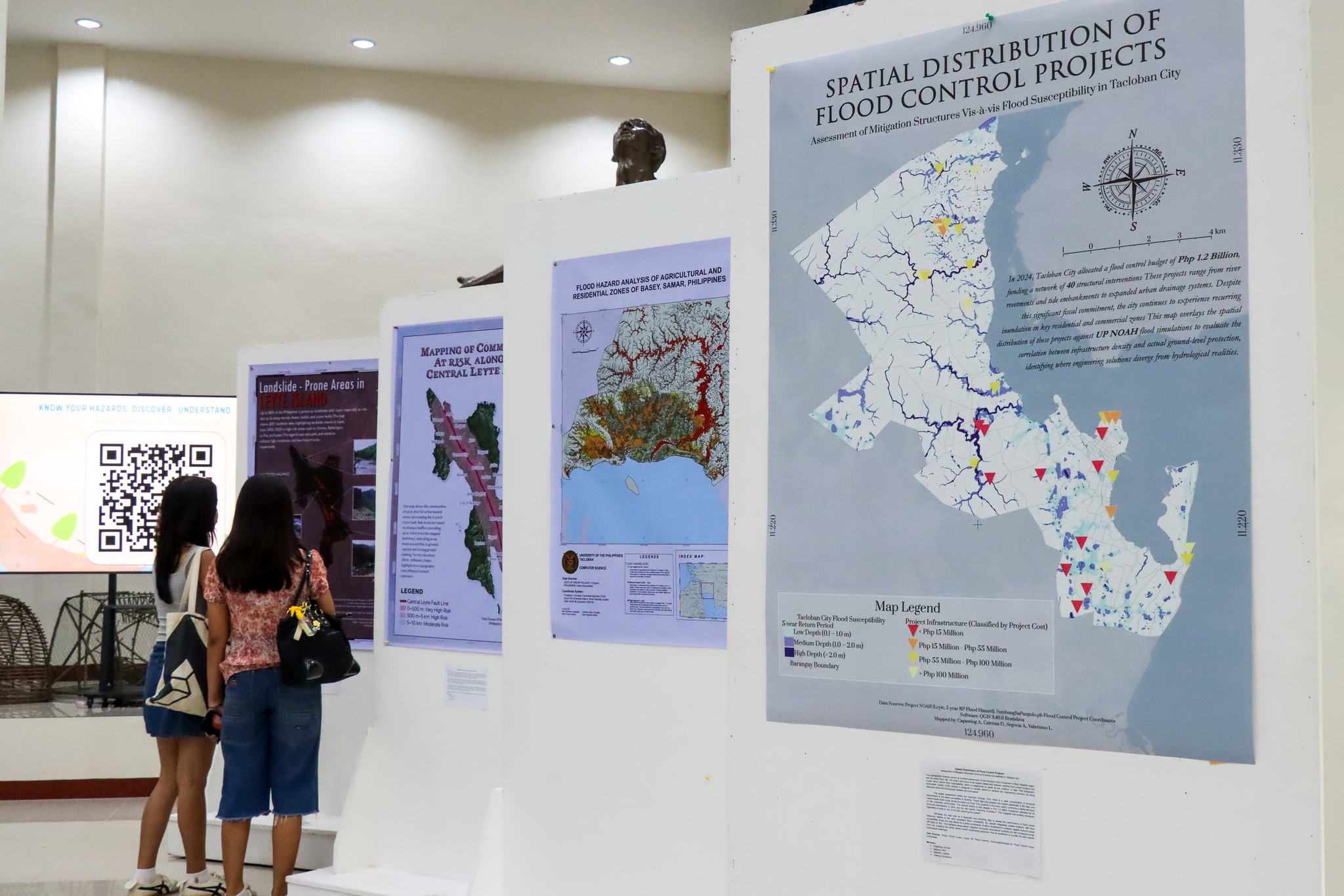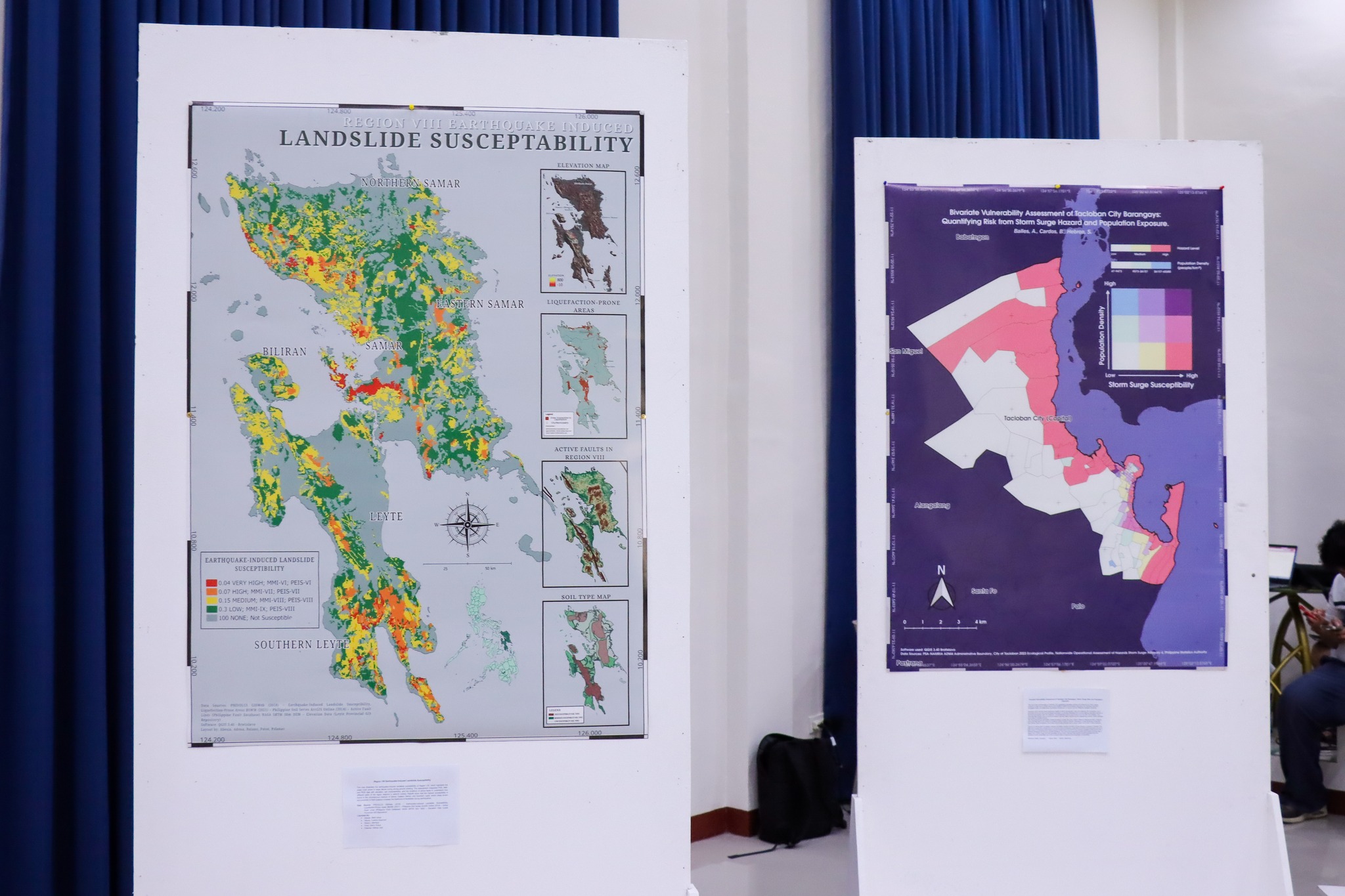 The exhibit showcased student-produced maps of natural hazards, community vulnerabilities, and disaster preparedness across Leyte and Samar. By visualizing floods, storm surges, landslides, earthquake-prone areas, emergency services and evacuation centers, and flood control measures against vulnerable areas, the maps highlighted regional risks and provided essential tools to strengthen local disaster response, resilience, and planning.