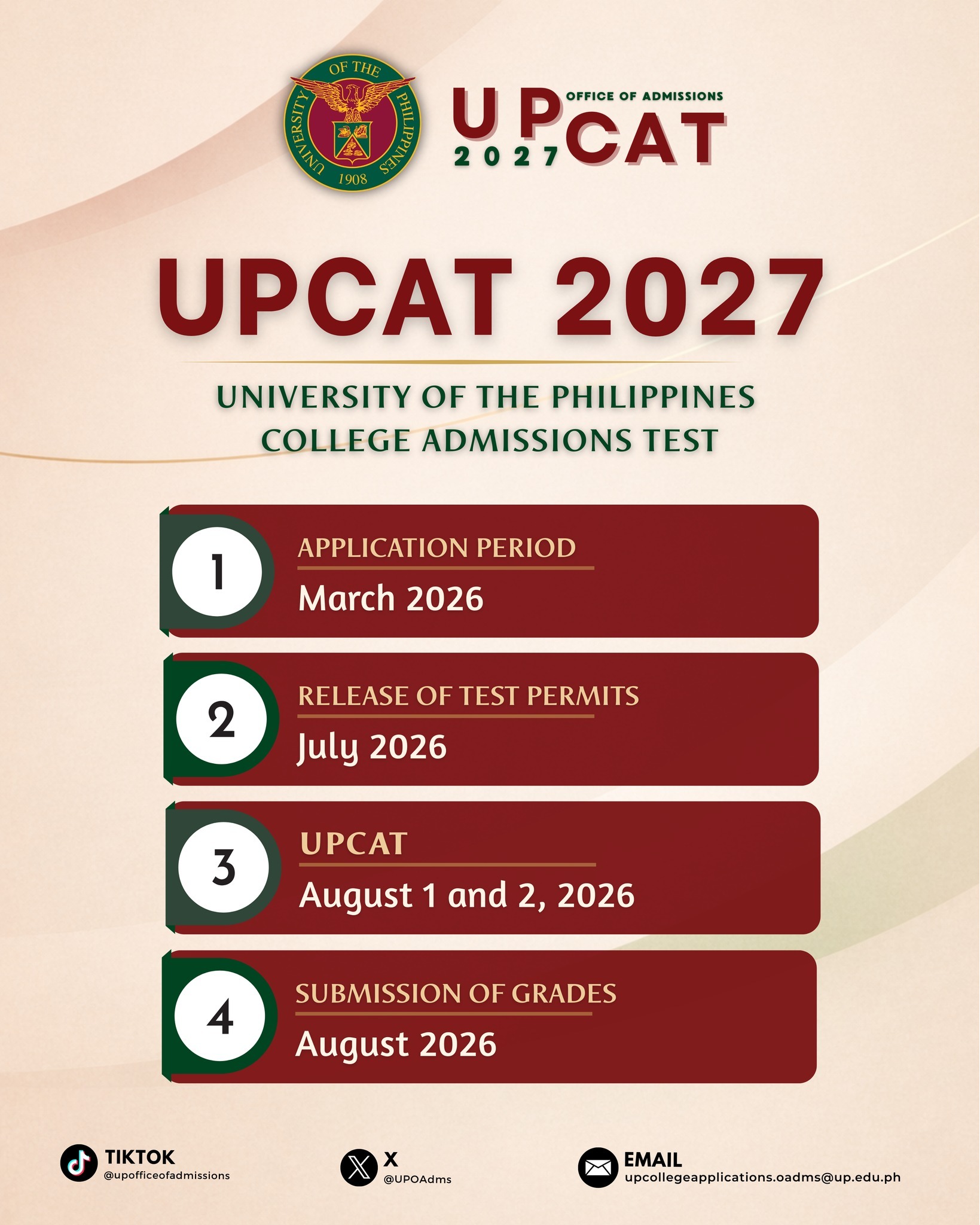 The UP Office of Admissions has released the key dates for UPCAT 2027.